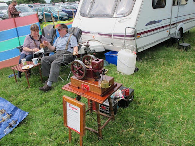 Just in front of where we parked are the stationary engines, wheezing and popping and sometimes jumping up and down as they 'fire'. There's typically a beautifully presented engine tended by the husband, a patient wife reading or knitting, and the residential caravan. I presume these couples spend many weekends each summer visiting the shows just like this.
