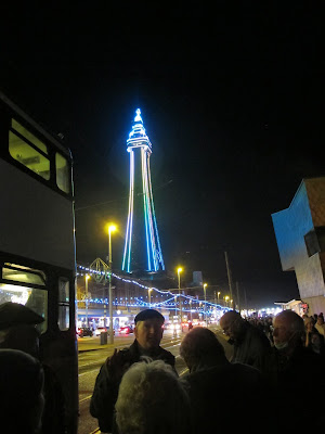 After the tram ride from Bispham to South Pier and back up to North Pier, Stephen, our tour guide, briefs us on where to meet our coach when it's time to return to the hotel (that'd be at 9pm, after we'd found some late supper and a drink, and enjoyed a short on-foot look at this - tackier than I remember it - resort).